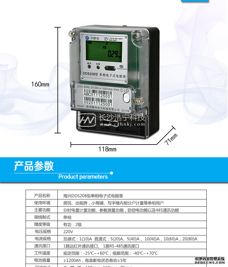 海興DDS208單相電子式電能表主要功能